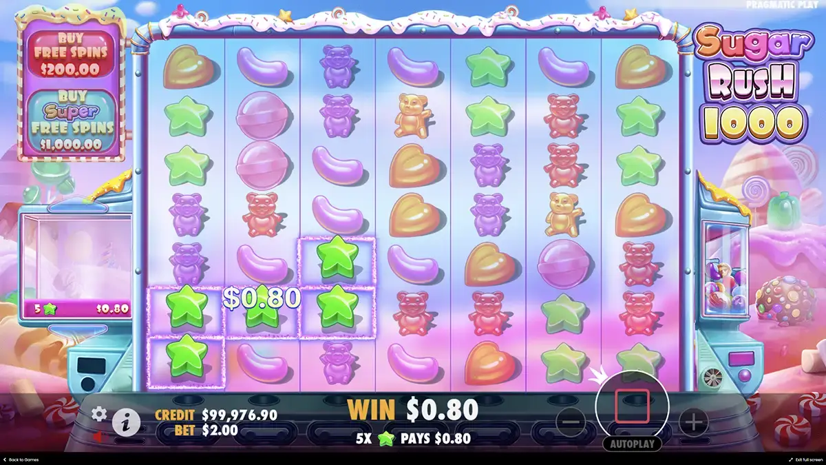 Ο Sugar rush 1000 demo κουλοχέρη περιλαμβάνει σχεδόν όλα τα χαρακτηριστικά της πλήρους έκδοσης. Ο παίκτης μπορεί να χρησιμοποιήσει όλα τα ειδικά σύμβολα, τα scatter και τις λειτουργίες cascading reels. Τα animations παραμένουν εξίσου ζωντανά και τα ηχητικά εφέ δεν διαφέρουν από την κανονική έκδοση. Επιπλέον, το Sugar rush 1000 demo παιχνίδι υποστηρίζει την επιλογή αυτόματης περιστροφής και γρήγορου spin, επιτρέποντας πλήρη έλεγχο ρυθμού.